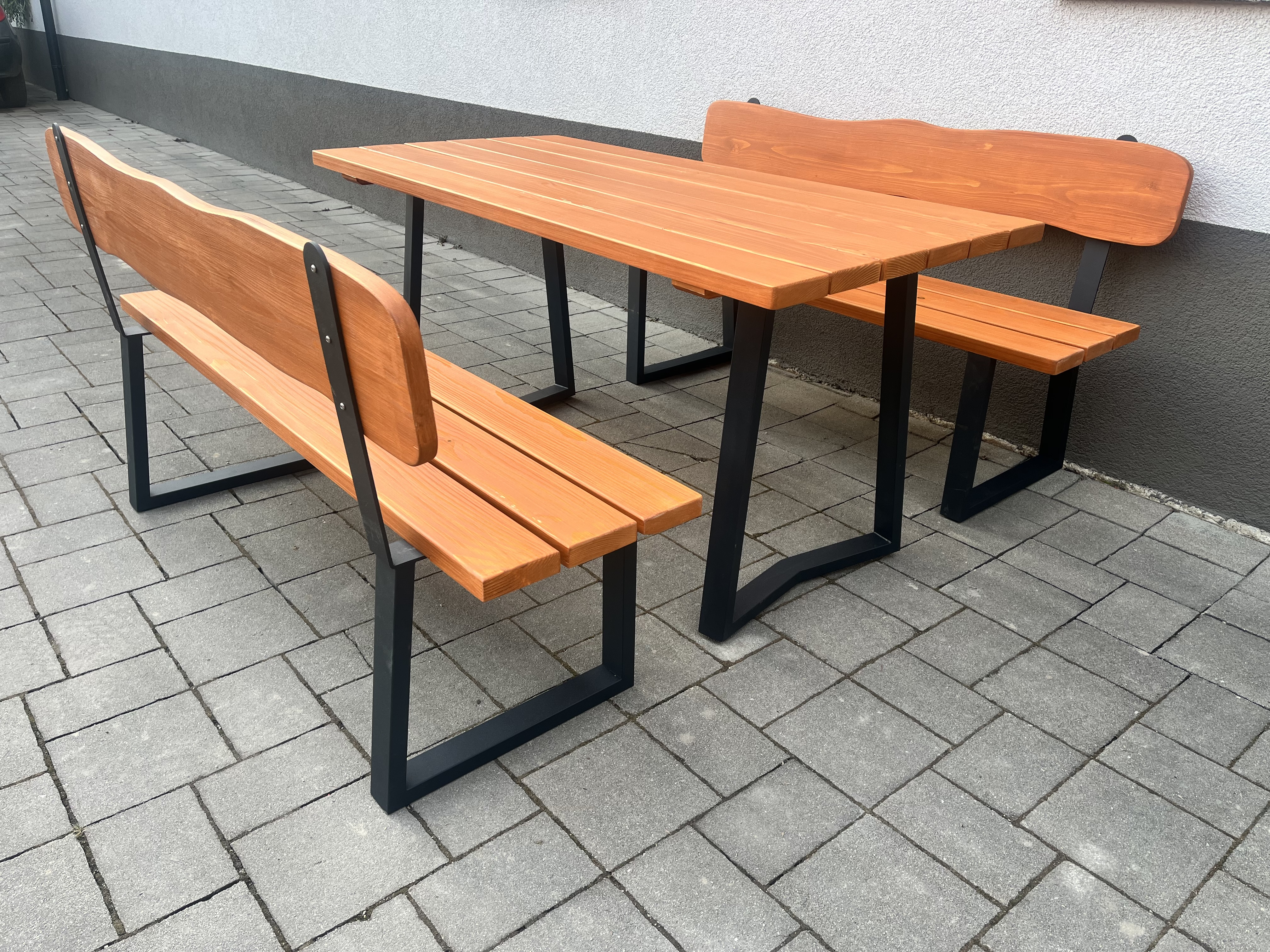 Moderna vrtna garnitura “Ella” s kovinskim podnožjem in masivnim lesom.